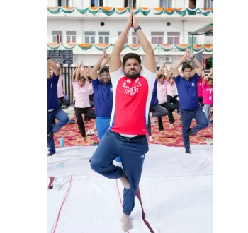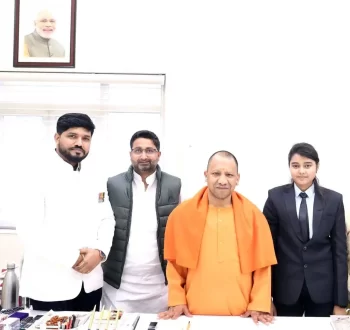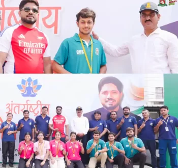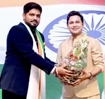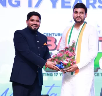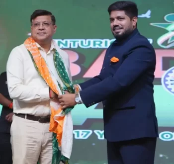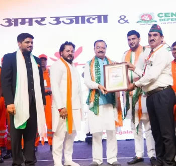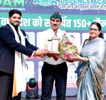 Sir Shishir Dixit, Chairman of Centurion Defence Academy, receiving accolades from Swatantra Dev Singh, Cabinet Minister, U.P. Government